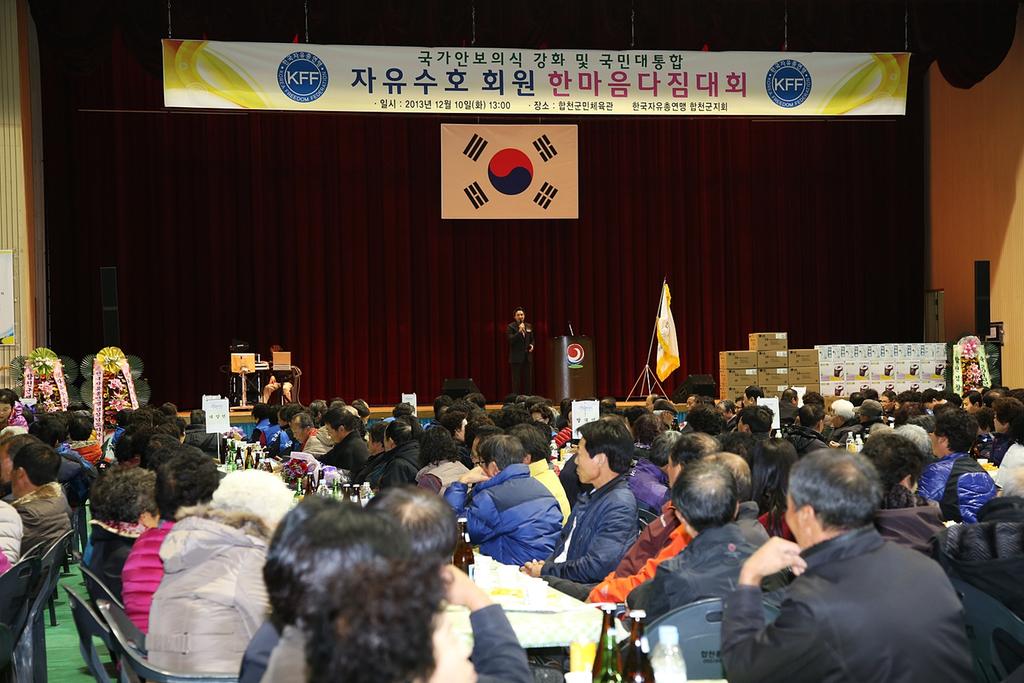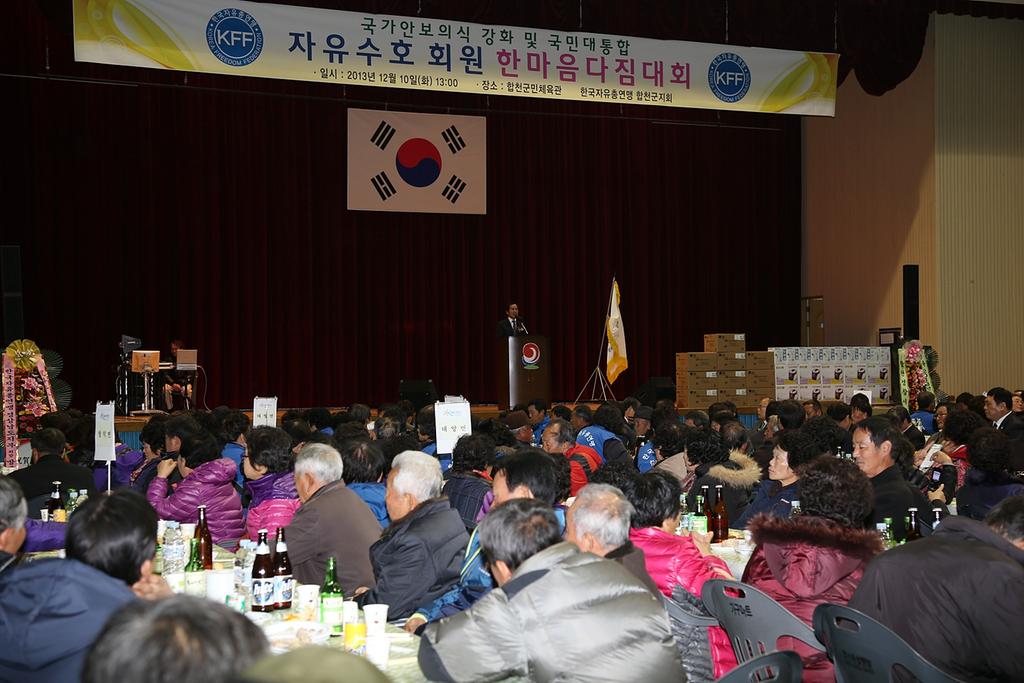한국자유총연맹 합천군지회(회장 진인성)는 10일 군민체육관에서 하창환 군수, 문준희 도의원, 허홍구 군의회 의장 및 군의원, 윤창수 경찰서장, 강경윤 교육장을 비롯한 관내 기관·사회단체장, 자유총연맹 회원 등 500여명이 참석한 가운데 2013 회원 한마음 대회를 개최했다.