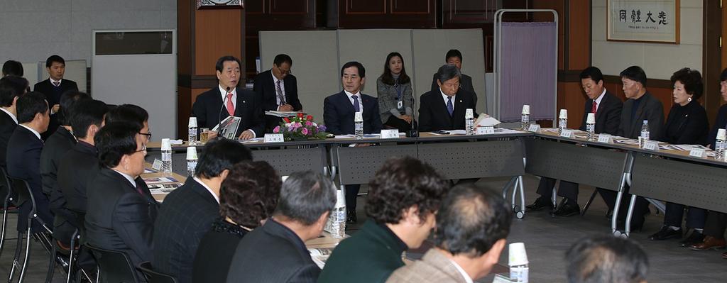 이번 간담회는 ▲ 중부내륙과 남해안을 연결하는 산업 기반구축과 국토균형발전을 위한 남부내륙고속 철도건설의 조기착수 ▲ 영호남과 충청권간 물류비 절감과 관광산업 활성화를 위해 시행중인 함양-합천-울산 고속도로 조기완공 등 합천군의 주요현안 25건 등 군정전반에 대한 정책을 공조 강화하기 위해 마련되었다.