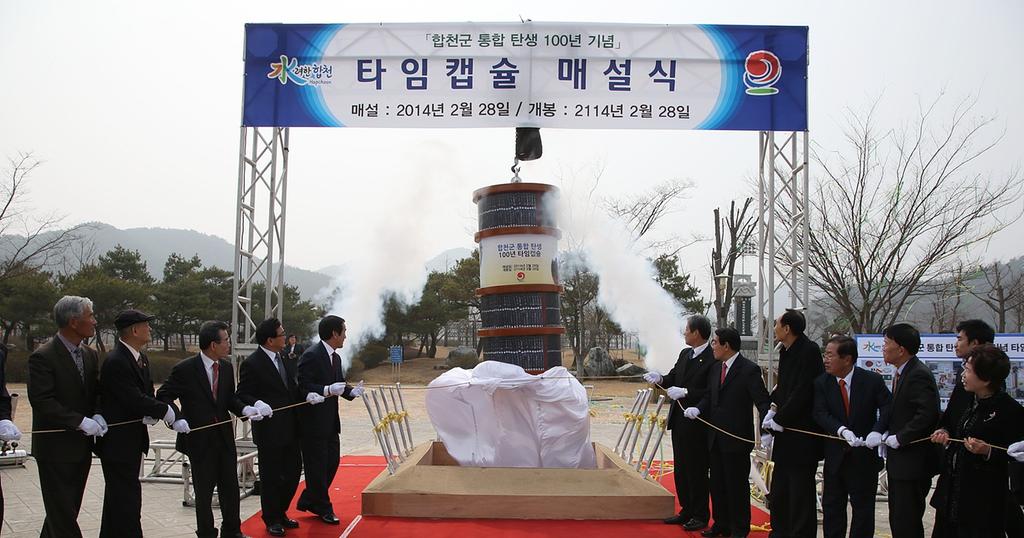 기념식 후에는 군의 역사와 현재의 일상을 생생하게 전달하고 미래의 후손들이 합천인의 삶과 역사를 이해하는데 도움이 되게 하기 위한 타임캡슐을 매설했다.