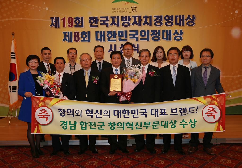 합천군은 지난 24일 서울 공군회관에서 개최된 제19회 한국지방자치경영대상 시상식에서 ‘창의혁신부문 대상’을 수상했다.