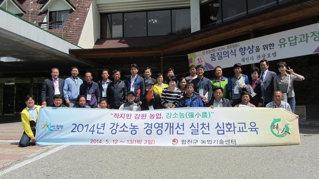 합천군은 지난 12일, 13일 양일간 해인사관광호텔에서 강소농 농가 30명을 대상으로 강소농 경영개선 실천을 위한 심화교육을 실시하였다.