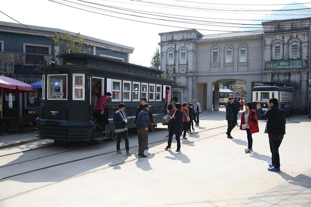 꽃마차에서 내리면 일제시대부터 1960년대까지 서울·부산에서 운행했던 추억속의 전차가 다시 우리를 기다리고 있다. ‘세트장을 왕복으로 순회하는 2대의 전차는 평일 2회, 주말 6회 운영되고 있고 주말 전차탑승시간에는 전차 주변으로 관람객이 몰려 출근길 서울 지하철에서 볼 수 있는 ‘탑승대란’이 종종 일어나기도 한다.