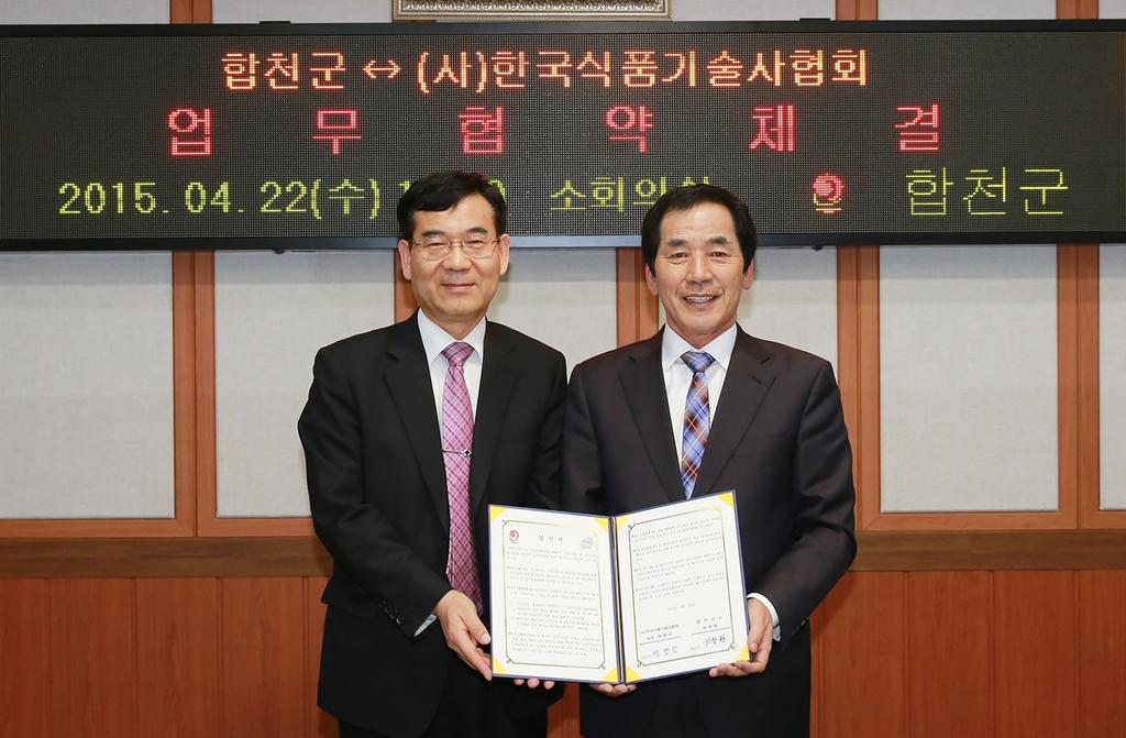 합천군과 업무협약을 체결한 (사)한국식품기술사협회는 1963년 대통령령 기술사법 제정을 통하여(법률제1442호)로 제정‧공포되어 농식품, 수산식품, 축산식품 등 식품분야 국가기술최고의 자격 전문가들의 식약처 산하 비영리단체로써 지자체 농업기술원, 농업기술센터의 농상가공, 창업보육, 유기가공인증, 포장제품 디자인개발, 식약처 관련 식품안전인증, 개별인정형건강기능식품 개발, 할랄식품인증 등 고도의 전문적지식과 실무를 바탕으로 결성된 단체로써 이번 협약체결을 통해 합천군 농정개혁 원년을 맞이하여 합천군6차산업화에 크게 기여할 것으로 본다.