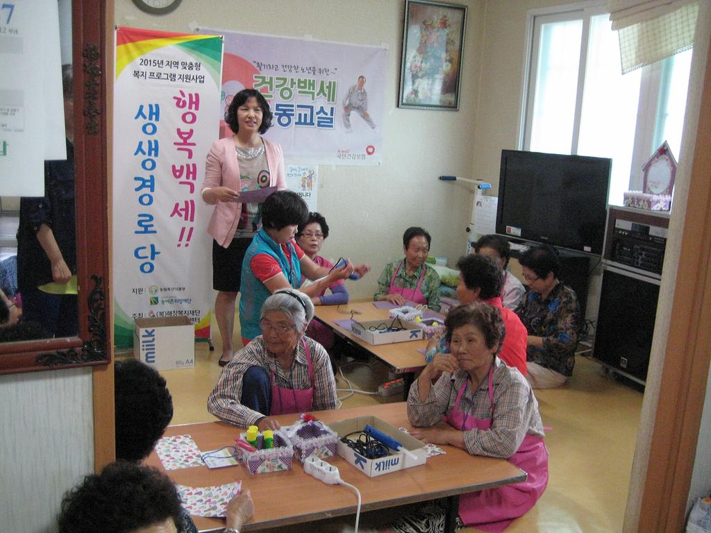 합천노인복지센터(센터장 이희목)는 농어촌 희망재단이 주관한 2015년 지역맞춤형 복지프로그램 지원사업으로 「행복백세!! 生生경로당」이란 슬로건을 내세워 지역 내 어르신들의 여가문화의 장으로 건전한 노후와 삶의 활력소 증진을 위한 프로그램을 운영한다.