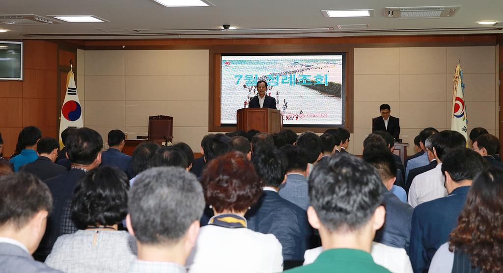 합천군(군수 하창환)은 2일 군청 대회의실에서 200여명의 공직자가 참석한 가운데 직원정례조회를 개최하였다.