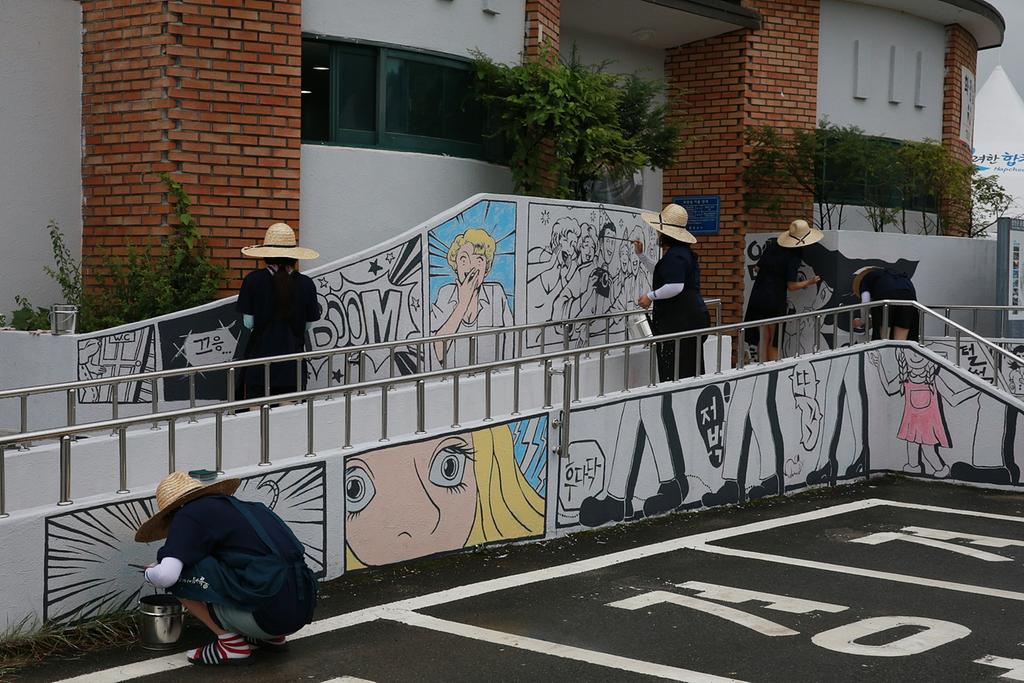 한양여자대학교 합천군에서 벽화그리기 봉사활동