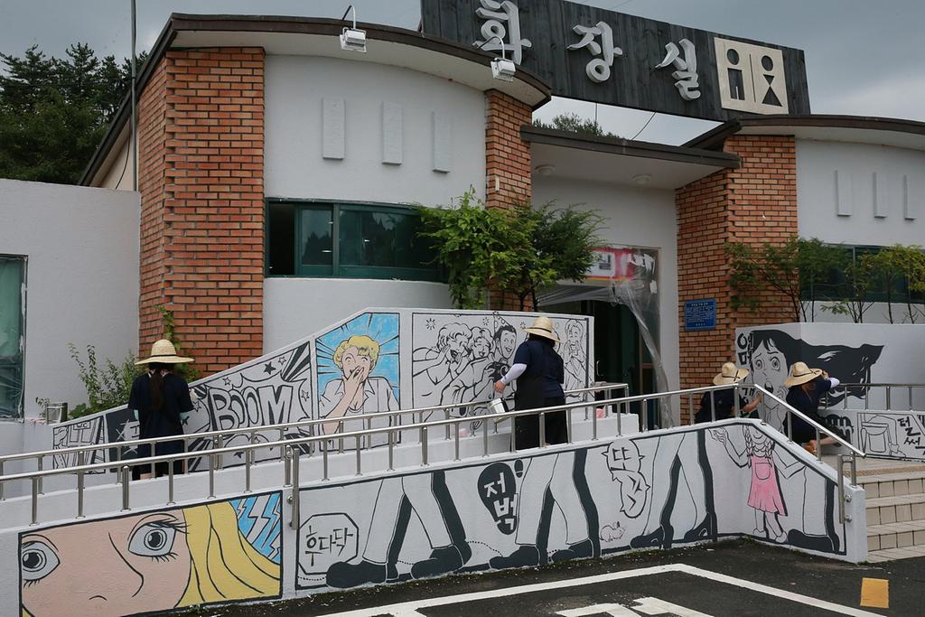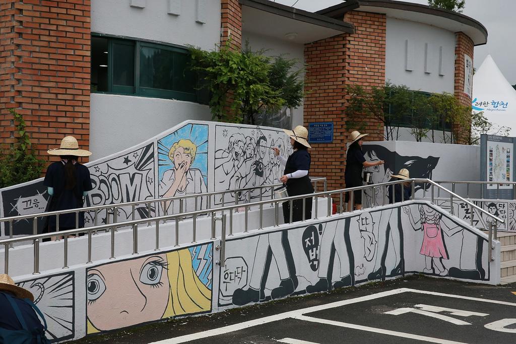 합천군(군수 하창환)에서는 한양여자대학교의 20여명으로 구성된 「벽화봉사단」이 지난 7월 14일부터 문화예술회관, 육아종합지원센터, 영상테마파크 화장실 등의 공공시설에 대한 벽화그리기 봉사활동이 한창이다.