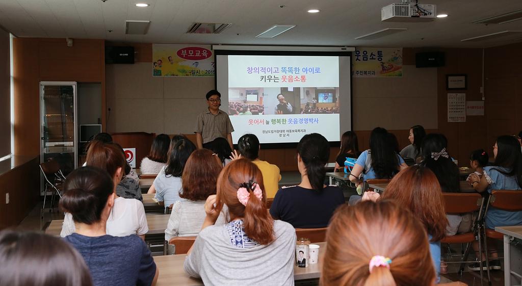 합천군 어린이집연합회(회장 신경자)는 7월 17일 합천군종합사회복지관 1층 소회의실에서 ‘똑똑하고 창의적인 아이로 키우는 웃음소통’이라는 주제로 관내 어린이집 학부모 70여명이 참석한 가운데 부모교육을 실시했다.