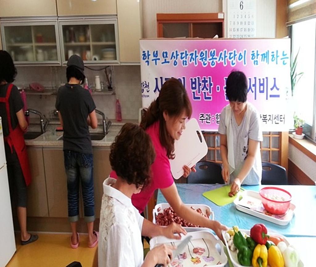 합천군청소년상담복지센터(센터장 최윤자)는 학부모상담자원봉사단 민들레회와 함께 상담센터 상담신청자 중 가정환경이 어려운 청소년 5가정을 선정하여 6월부터 2주에 한번씩 사랑의 반찬·물품지원서비스 봉사활동을 펼치고 있다.