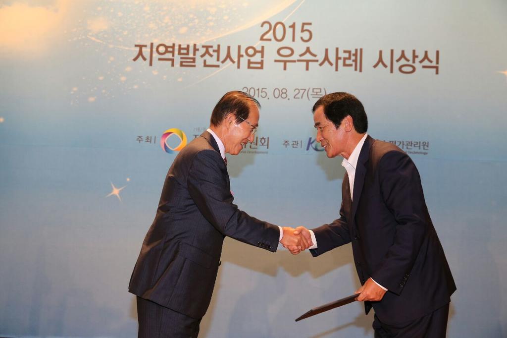 - 2년 연속 수상, 지역발전사업 추진 전국 최고의 지자체로 인정