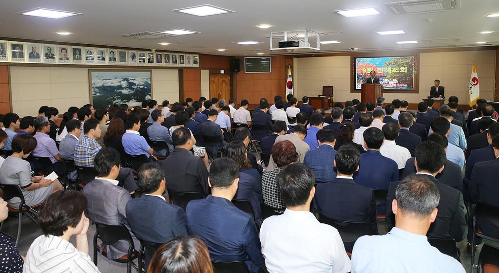 합천군(군수 하창환)은 4일 군청 대회의실에서 200여명의 공직자가 참석한 가운데 직원정례조회를 개최하였다.