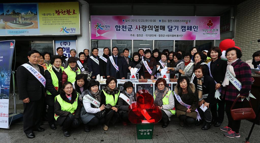 합천군은 군민의 자율적인 참여를 유도하기 위해 지난해 12월 23일 합천읍 시외버스 터미널 앞에서 관내 기관․사회단체장, 사랑의 열매나눔봉사단(단장 박영덕), 사회봉사단체 등과 함께 사랑의 열매 달기 행사와 거리 캠페인을 실시하였고, 전읍면에서도 성금 모금 활동과 홍보 활동을 전개하여 분위기 조성에 적극 노력하였다.
