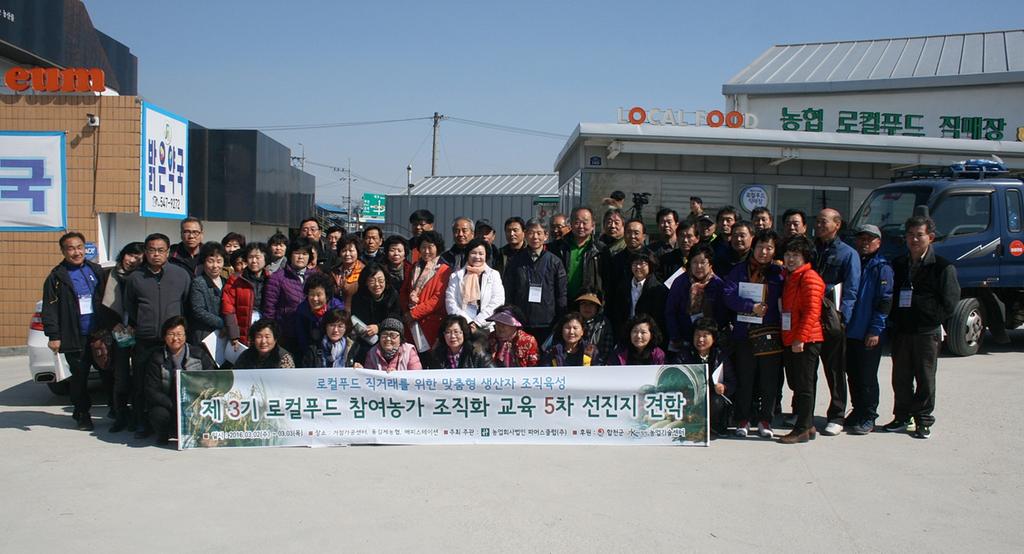 특히, 마지막 교육과정인 선진지 견학은 1박 2일 일정으로 완주농민거점가공센터 시설 현황과 농업인들이 직접 가공하는 현장과 함께 동김제농협 로컬푸드 직매장, 완주로컬푸드해피스테이션 모악산 직매장을 방문하였다. 이에 따라 매장 현황 청취와 직매장에 진열되어있는 다양한 농특산물을 직접 둘러보고 합천형 로컬푸드 성공을 위하여 참여농가 스스로가 준비해야 할 점들을 몸소 느끼며 고민하는 뜻 깊은 시간을 갖기도 하였다.