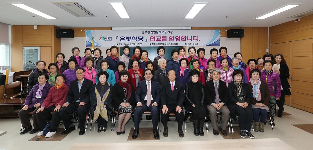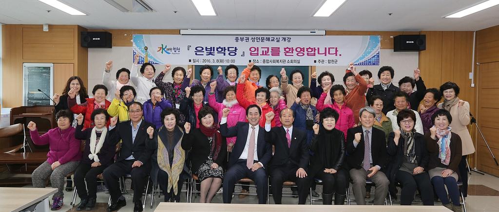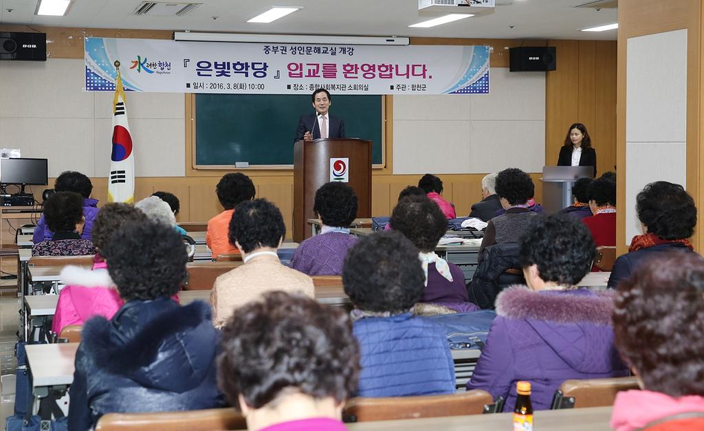 합천군(군수 하창환)은 2016년 권역별 성인문해교실인 ‘은빛학당’을 개강했다.