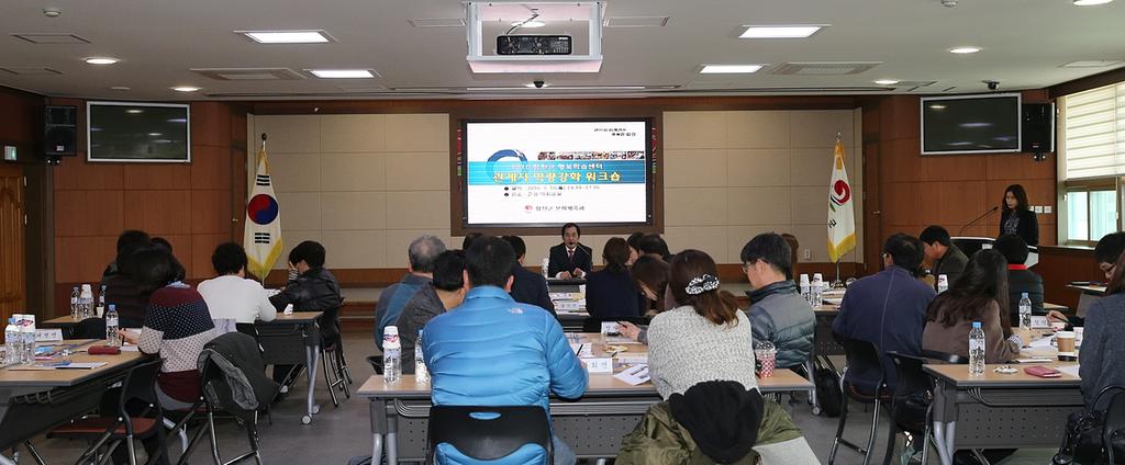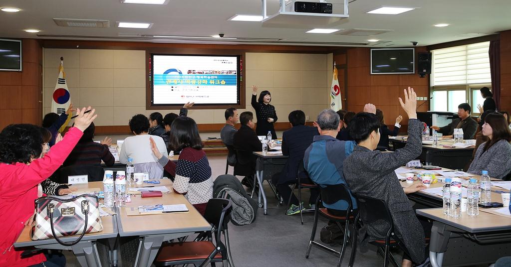 이번 워크숍은 2016년 「행복학습센터」의 본격적인 사업 운영에 앞서 읍면담당자와 마을이장 등 34명이 참여해 효율적인 사업 운영에 대한 정보와 의견을 나누었다.