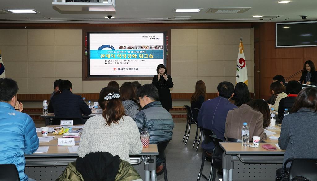 합천군(군수 하창환)은 10일 오후 1시 30분, 군청 대회의실에서 행복학습센터 관계자 역량강화 워크숍을 개최하였다.
