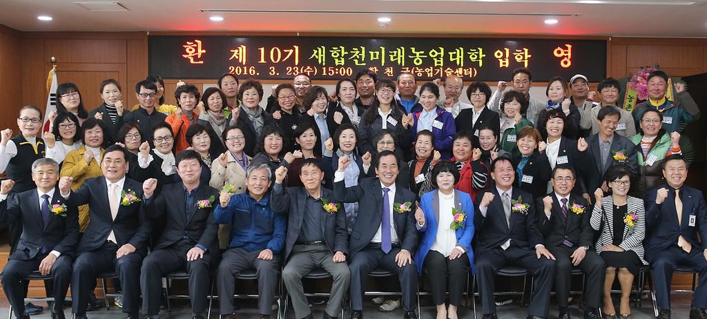 합천군은 23일 농업기술센터 대강당에서 하창환 군수를 비롯해 허종홍 군의회의장과 기관사회단체장, 신입생 등 100여명이 참석한 가운데 합천농업을 선도해 나갈 핵심 농업전문 인력 양성을 위한 「제10기 새합천미래농업대학」 입학식 행사를 가졌다.