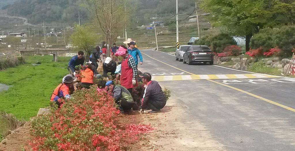 야로면 유촌마을 도로변 연산홍, 꽃잔디 등 식재, 꽃길 조성