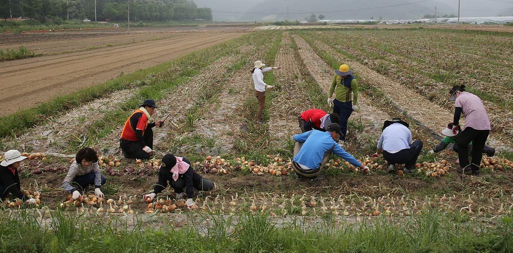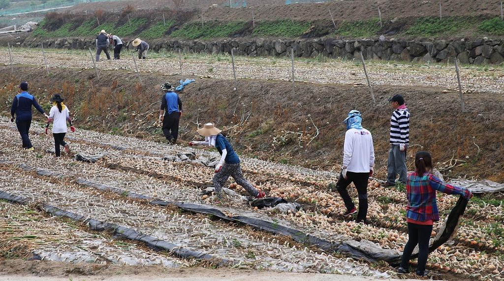 또한 군에서는 농촌인력의 감소와 고령화 및 부녀화로 농번기에 일손이 부족한 농가를 돕기 위해 지난 5월 20일부터 6월 20일까지 일손돕기 중점추진기간으로 설정하고 군 및 읍면에『농촌일손돕기 알선창구』설치 운영하고 있으며, 농업기술센터『농기계 대여은행』에서는 양파, 마늘 수확작업기 대여 등 영농지원에 적극 나서고 있다.