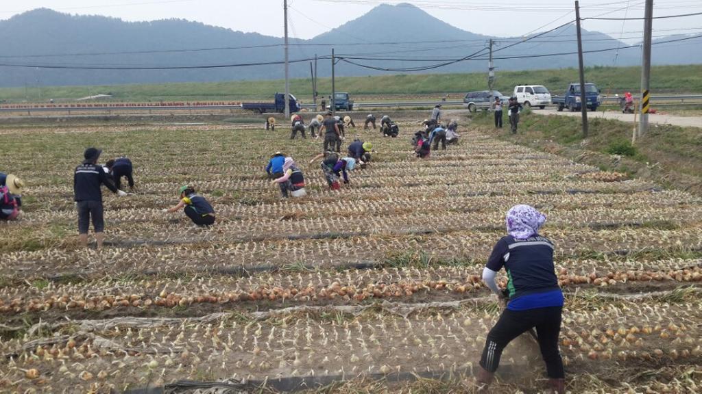 양파 수확기를 맞았지만 일손이 부족한 주종순 씨(77세) 등 2농가 1,900여평에 대한 양파수확 일손 돕기를 하여 농번기에 어려움을 겪고 있는 농가에 큰 걱정거리를 들어줬다.