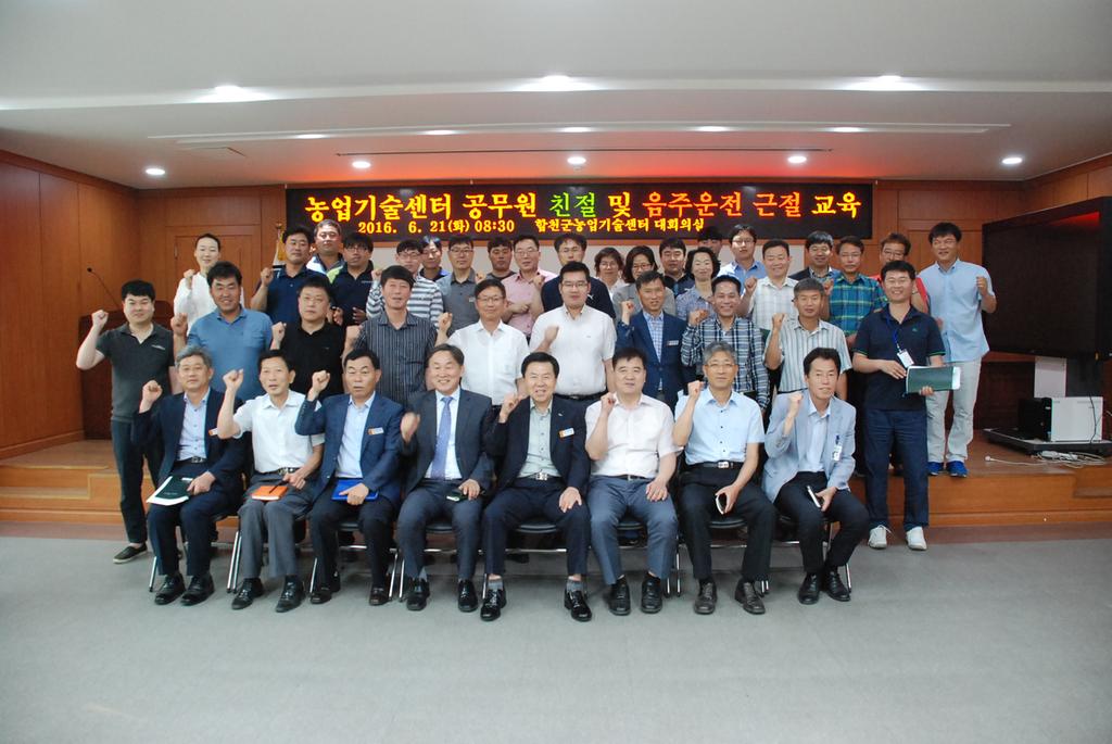 합천군 농업기술센터(소장 이진출)는 21일 농업기술센터 3층 대회의실에서 농업기술센터 전 직원을 대상으로 공무원 친절 및 음주운전 근절 특별교육을 실시했다.