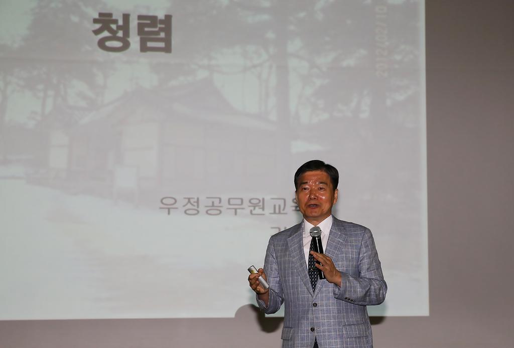 또한 청백리로 잘 알려진 조선시대 명재상인 황희, 맹사성과 실천적 유학자인 정약용 선생의 청렴사상을 일화를 곁들여 재미있게 설명하고, 중국의 고전, 경주 최부자의 노블레스 오블리주 정신, 싱가포르 정부의 청렴 비결 등 다양한 사례를 예로 들면서 공직자의 바람직한 행동방향을 제시하고 스스로를 되돌아보게 하는 의미 있는 기회를 제공했다.