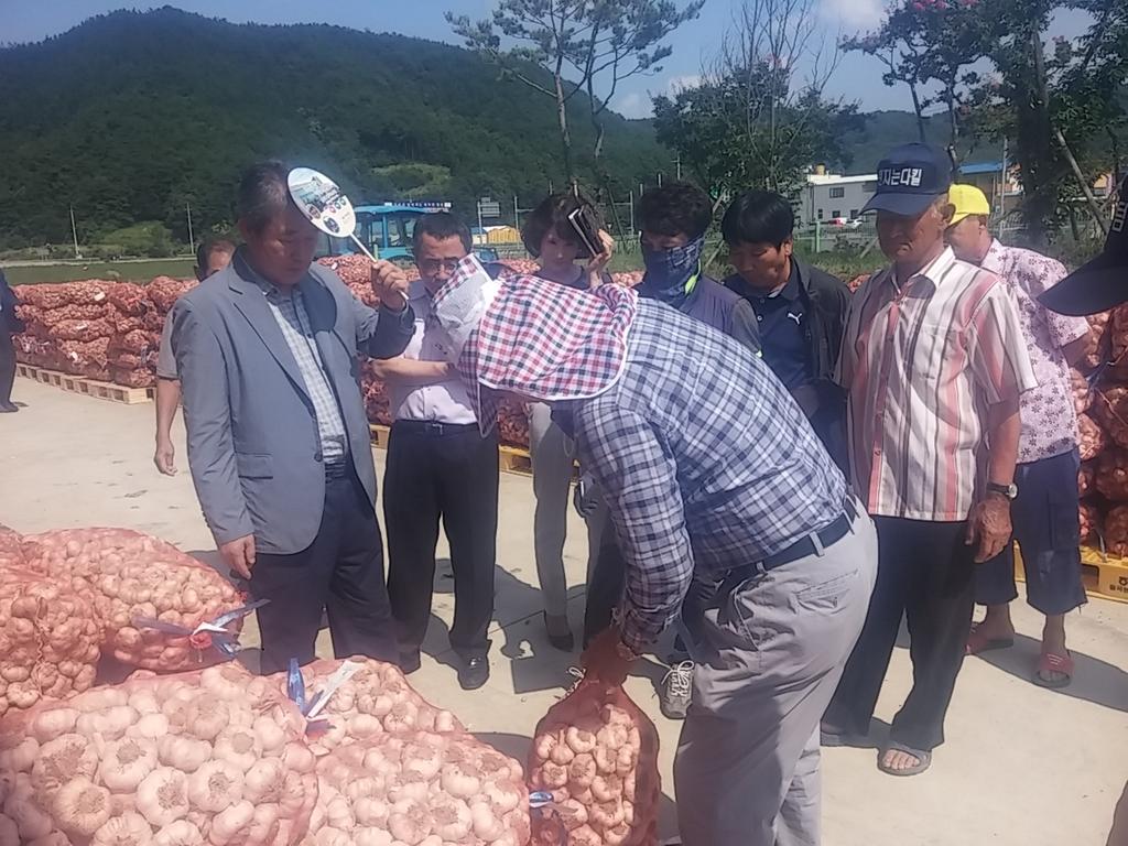 율곡 농산물공판장에서 마늘 경매 성황리에 열려
