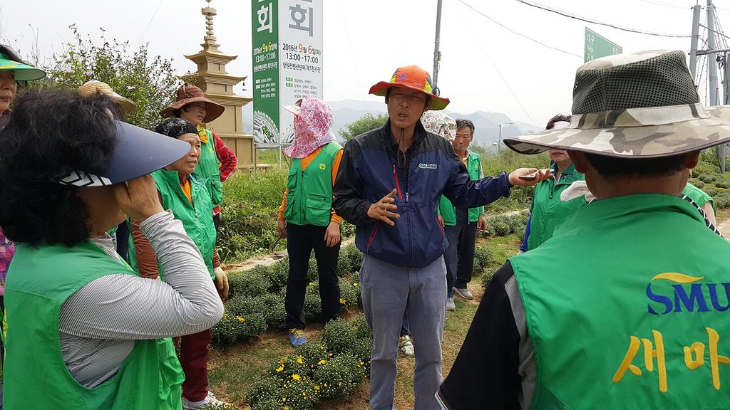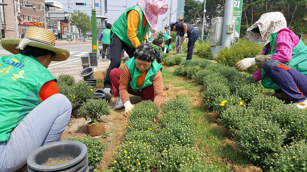 이날 작업은 일해공원 주변 및 남정교 좌측 화단에 가을 국화 3,000여본을 식재했으며, 아울러 남정교차로 초입에서 K-water사원아파트 입구까지 인도와 화단에 제초작업을 병행 실시하여 큰 호응을 받았다.