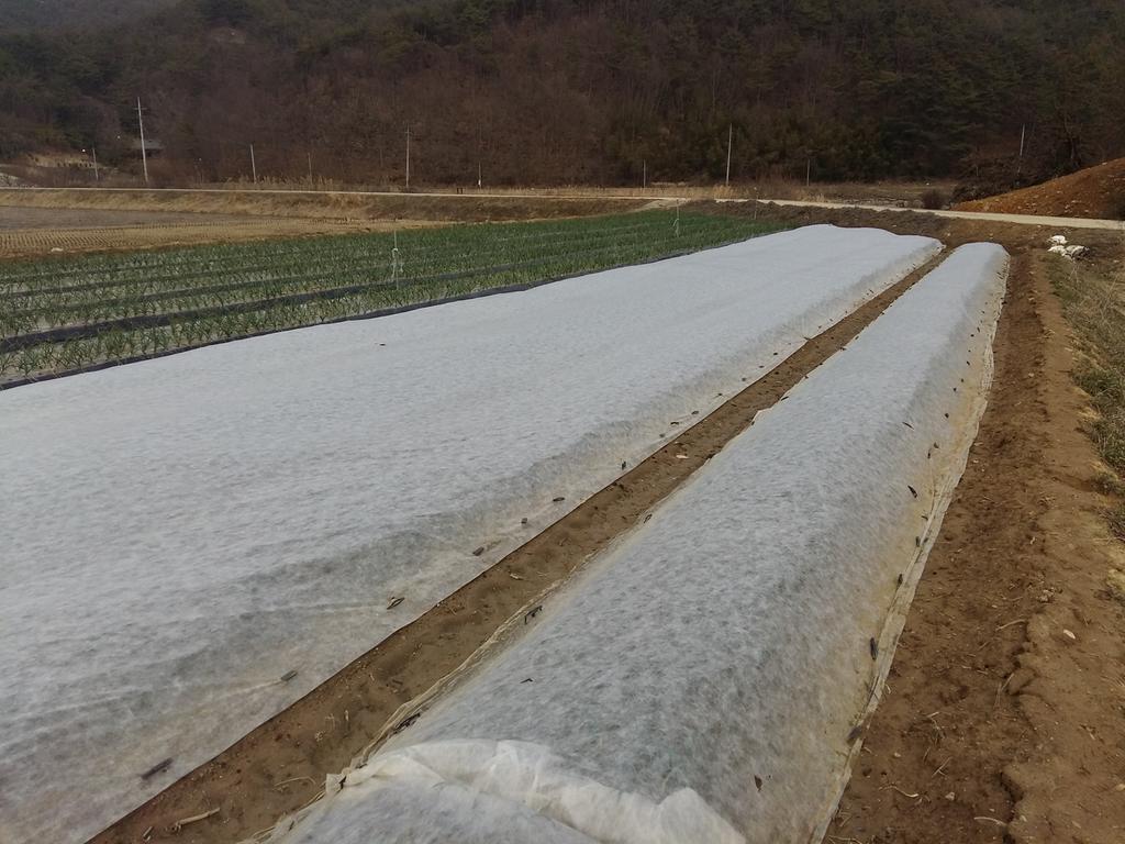 마늘 파종이나 양파 정식이 늦어지면 일찍 추위가 찾아와 겨울 중에 얼어죽거나 서릿발 피해가 나타날 우려가 있으므로, 파종 정식 10일 정도 후 두께 40g/㎡ 정도의 부직포를 추가로 덮고 T자형 고정핀으로 2~3m 간격으로 고정하여 11월부터 2~3월까지 보온하면 안전한 월동으로 결주율이 53% 감소하고 상품수량이 99% 증가한다.