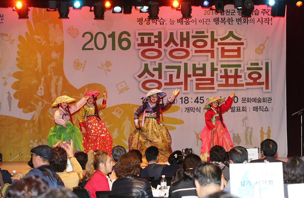 저녁 7시 문화예술회관에서 펼쳐진 평생학습 성과발표회는 250여명의 평생교육 학습자가 모인 가운데 평생학습주간을 기념하는 개막식을 시작으로 23개 학습 단체의 공연과 전시, 그리고 마술사 조정래 씨는 매직쇼로 진행되었다.
