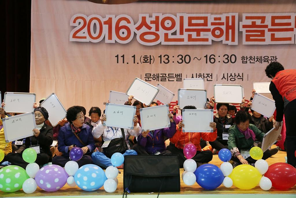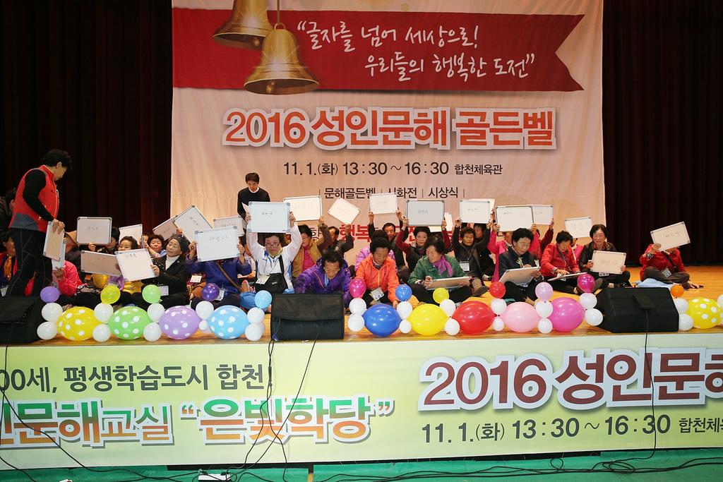합천군(군수 하창환)은 1일 합천체육관에서 성인문해교실 ‘은빛학당’ 학습자 500여명을 모시고 『2016 문해골든벨』을 개최했다.