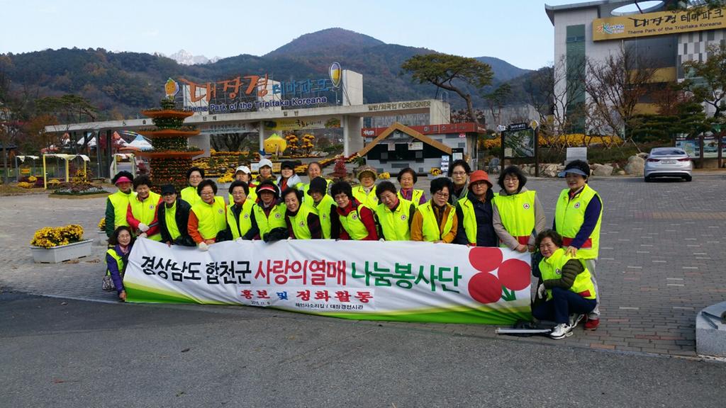 이날 행사에는 박영덕 단장을 비롯해 단원 30여명이 참여하여 지난 6일 끝난 2017 대장경세계문화축전의 성공적인 개최를 기원하는 ‘2016년 팔만송이 국화향기전’ 행사장 및 단풍철 관광객이 많이 찾는 해인사 소리길 주변의 각종 쓰레기를 수거하고 정돈했다.