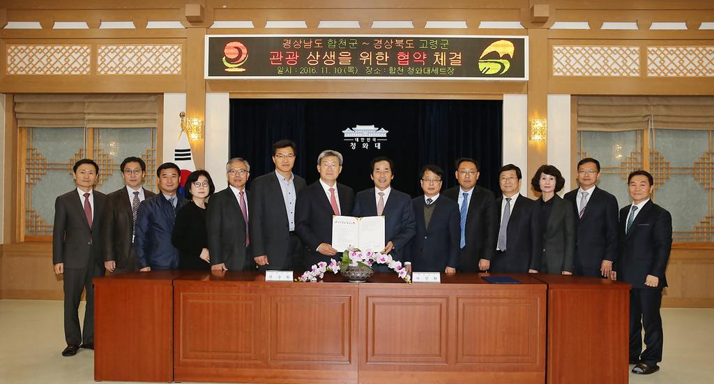 합천군(군수 하창환)은 10일 합천 청와대세트장에서 고령군(군수 곽용환)과 ‘관광 상생을 위한 협약’을 체결했다.