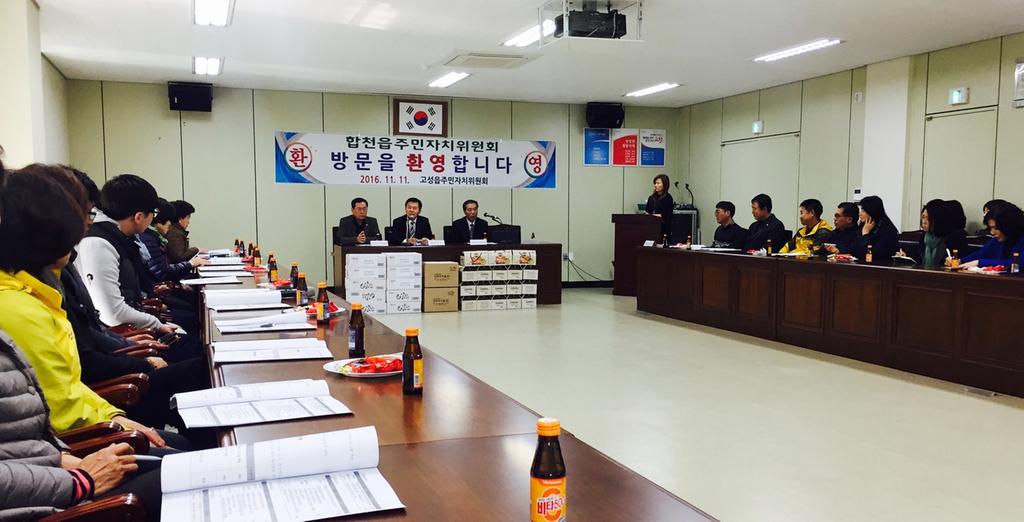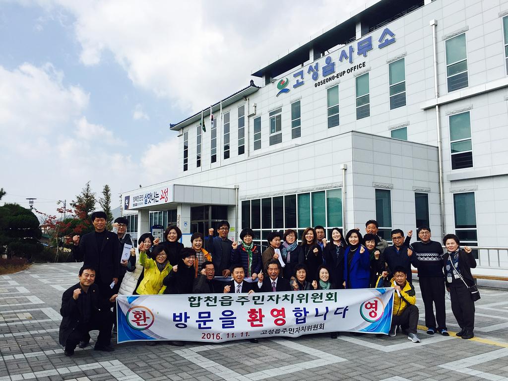 이날 이진출 합천읍장을 비롯한 합천읍 주민자치위원 등 20명이 고성읍을 찾았으며, 고성읍 주민자치위원회(위원장 김권수)는 입구에서부터 우리들을 성대히 환대해 주었으며 분위기부터가 남달랐다.