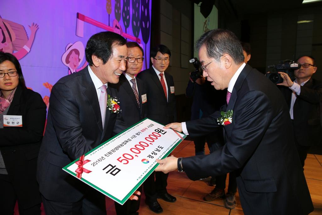 15일 창원컨번션센터에서 열린 ‘제21회 농업인의 날’ 행사에서 최우수기관상 도지사 표창과 상사업비 5,000만원을 받았다.