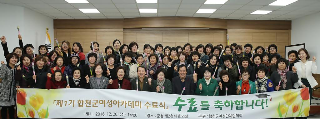 합천군(군수 하창환)은 지난 28일 제2청사 대회의실에서 여성 리더 양성을 위한 「제1기 여성아카데미」 수료식을 개최했다.
