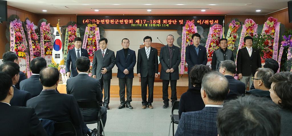 이번에 이임하는 17대 주영신 회장과 임원 6명(문상주 전 수석부회장, 강동규 전 정책부회장, 김수석 전 사업부회장, 최광수 전 대외협력부회장, 조창규, 문병기 전 감사)은 지역농업 발전에 기여한 공로를 인정받아 군수와 군 의장 및 타 기관으로부터 공로패를 전달 받았다.