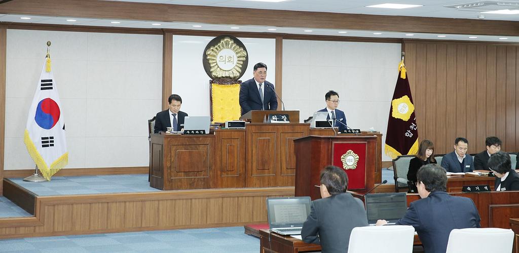 김성만 의장은 개회사에서 “조류인플루엔자와 구제역 유입차단을 위해 정월대보름행사까지 취소하며 방역에 최선을 다 하는 가운데 춘계 한국고등학교 축구연맹전 유치로 자칫 침체될 지역경제 활성화에 도움이 되고 있어 다행으로 생각하며 집행부의 노력에 감사드린다.”고 말했다.