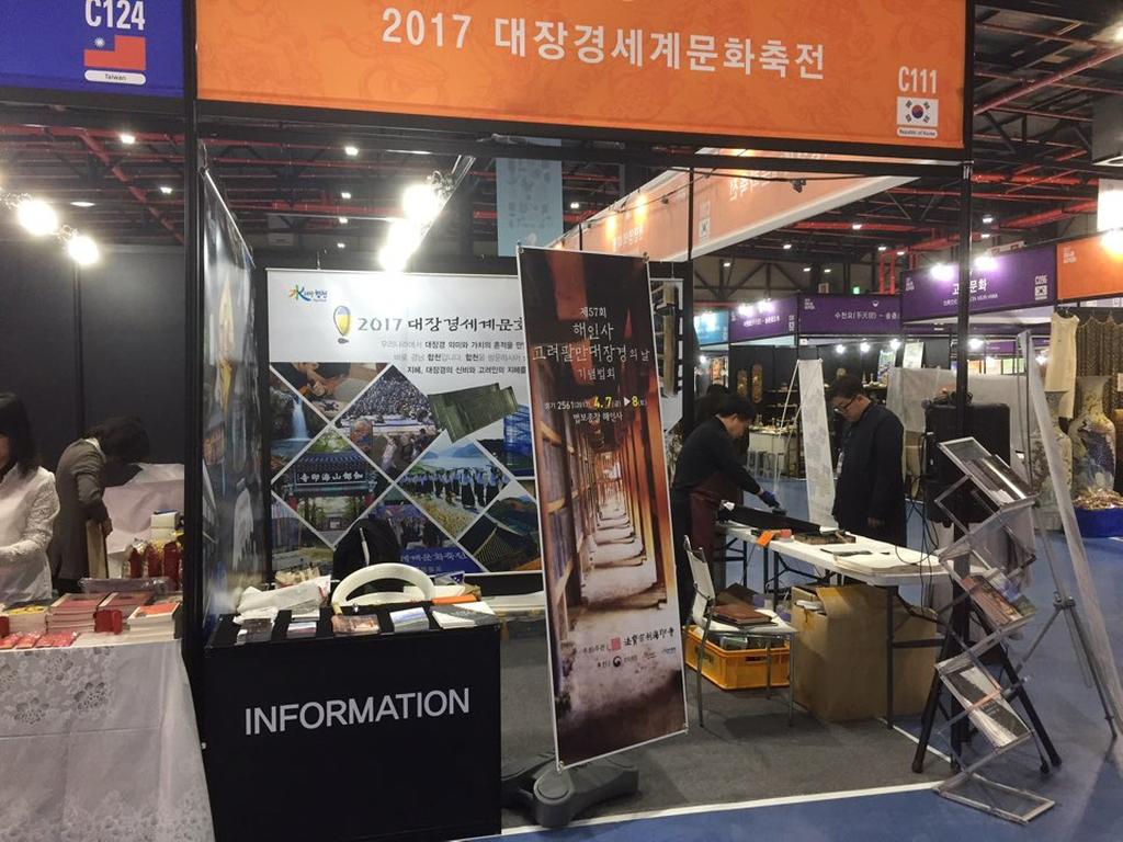 2017 대장경세계문화축전(2017년 10월 20일부터 11월 5일까지 17일간)을 준비하고 있는 합천군은 반야심경 및 변상도 인경체험과 연화문 탁본체험, ‘도전! 낱말 맞추기’ 등 다양하고 차별화된 프로그램으로 축전을 홍보하여 박람회를 찾은 관람객들에게 크게 인기 몰이를 하고 있다.