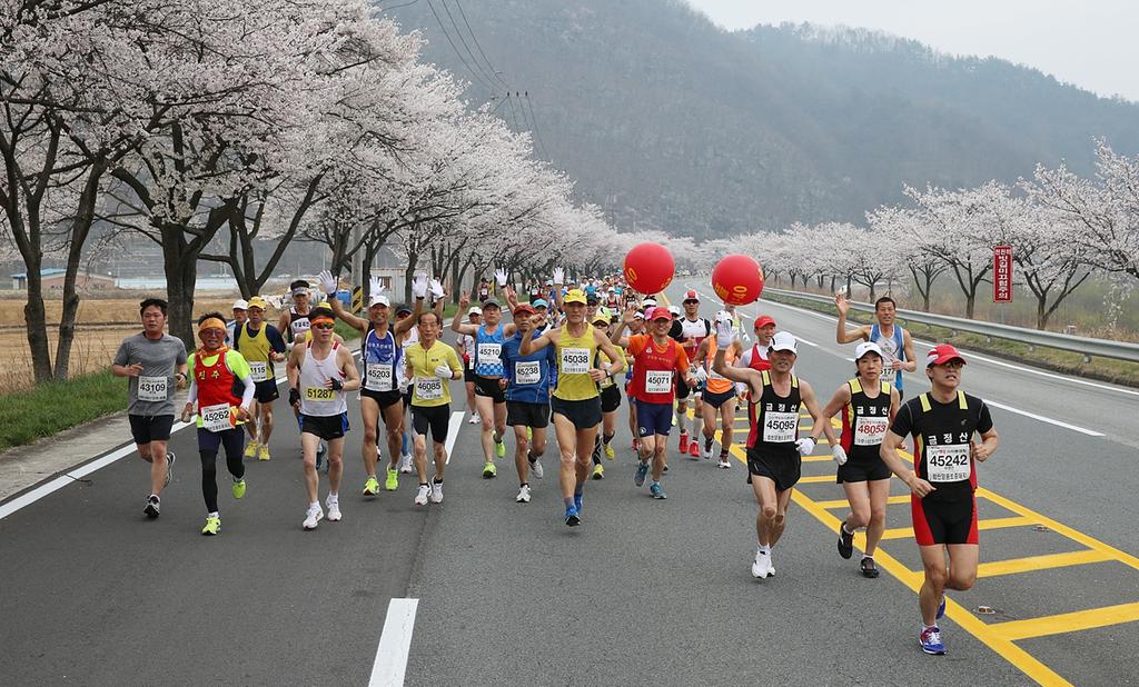 올해로 16회째를 맞는 이번 대회는 지난 10일 참가신청을 마감하였으며, 총 8,500여명의 참가자가 황강의 물줄기를 따라 펼쳐진 환상적인 벚꽃마라톤 코스를 달리게 된다.