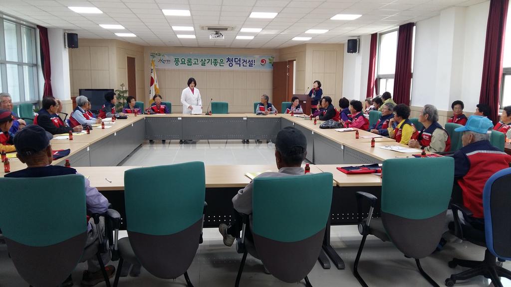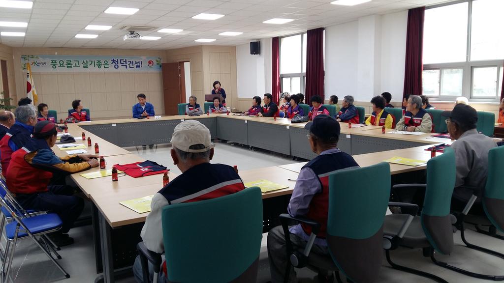 합천군 청덕면(면장 강창념)은 4월 19일 오전 10시30분 면사무소 2층 회의실에서 35명의 노인일자리사업 참여 어르신들의 노고를 격려하고, 일자리사업 중간점검과 함께 애로사항을 청취하기 위한 간담회를 가졌다.