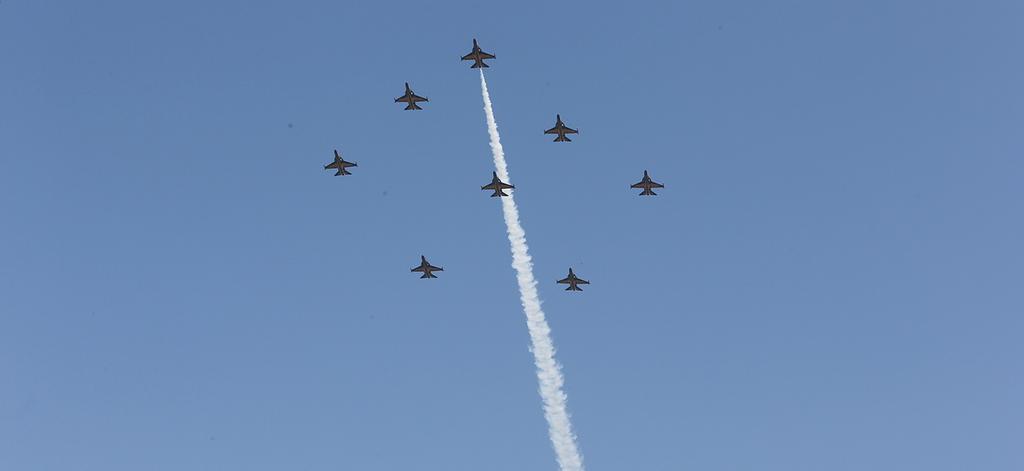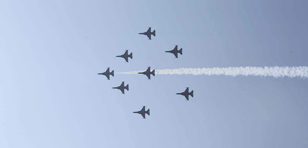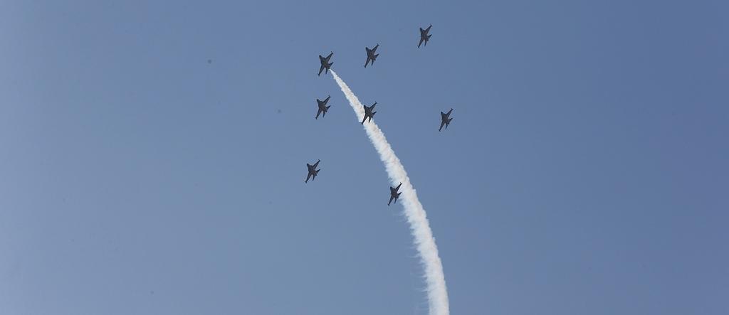 공군 소속 블랙이글스 8대가 28일 토요일 10시30부터 약 7분간 대장경축전의 주행사장인 대장경테마파크 상공을 비행하며 축전장을 찾은 일반관람객들에게 환영 퍼포먼스를 선보인다.