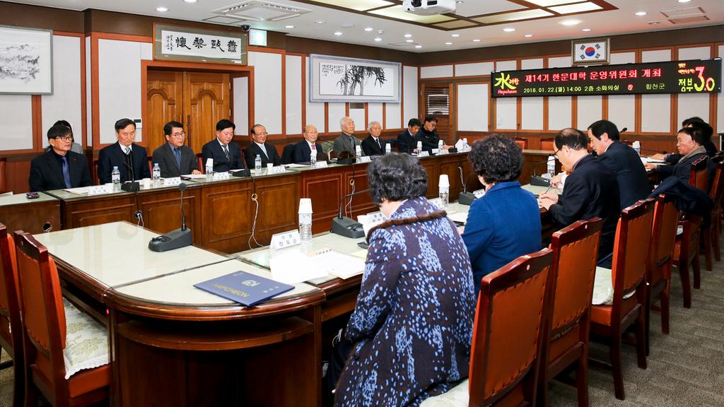 합천군 부설 한문대학(대학장 하창환)에서는 학사운영전반에 대한 심의를 위해 22일 오후2시 군청 소회의실에서 위원장을 포함한 17명이 참석한 가운데 제14기 대학운영위원회를 개최하였다.