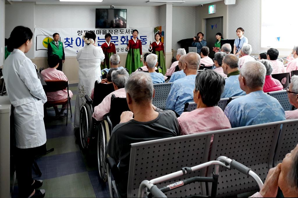 새마을문고합천군지부(회장 마정출)는 지난 10일 오후 2시 합천요양병원(합천읍 신소양 소재)에서 요양원 어르신 및 직원 등 50여명이 참석한 가운데 “상반기 찾아가는 문화활동”을 실시했다.
