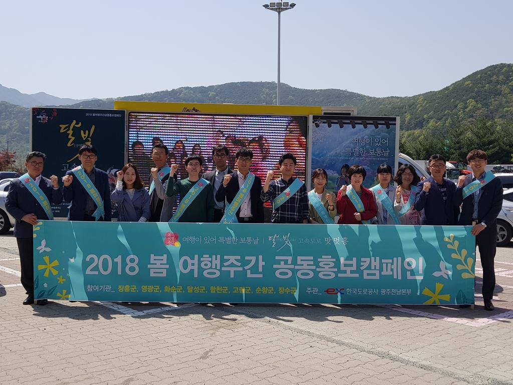 합천군(군수 하창환)은 19일, 2018 봄 여행주간(4.28.~5.13.)을 맞이하여 영·호남 지자체와 함께 관광객 유치를 위한 홍보 캠페인을 개최했다. 新대구부산고속도로 청도새마을휴게소에서 개최한 이번 캠페인에는 지자체 관광지 및 축제를 홍보하기 위해 합천군을 비롯한 화순군, 영광군, 장수군, 고령군, 장흥군, 순창군, 달성군 등 8개 지자체와 한국도로공사 광주전남본부가 함께 참여했다.
