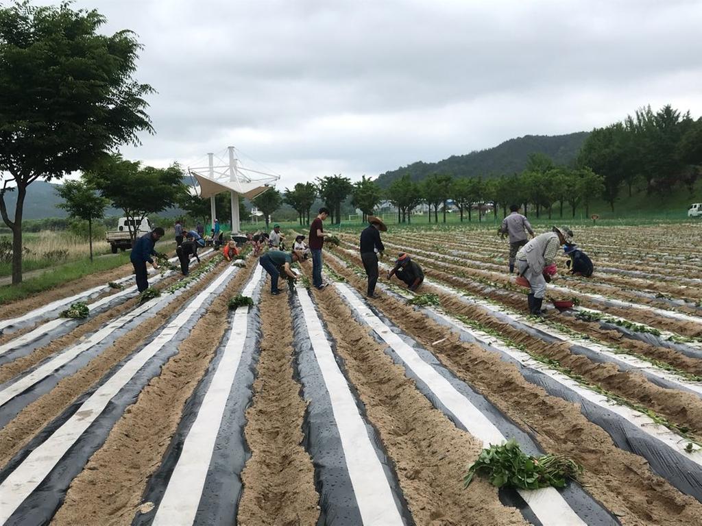 비닐멀칭작업 등을 끝마쳤고 금일 고구마 식재작업을 실시하게 되었다.