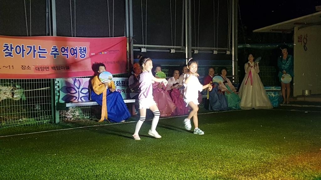 합천군 대양면(면장 추찬식)은 지난 25일 19시 백산게이트볼장에서 특별공연 무대를 설치하여 백암, 상촌, 오산마을 주민 120여명이 참여한 가운데 지역의 건강한 사회 분위기 조성을 위해 대양면 백암보건진료소(소장 권귀순)후원으로 합천예술 봉사단(단장 전인자)의 “신나는 예술여행”이라는 주제로 공연을 가졌다고 27일 밝혔다.