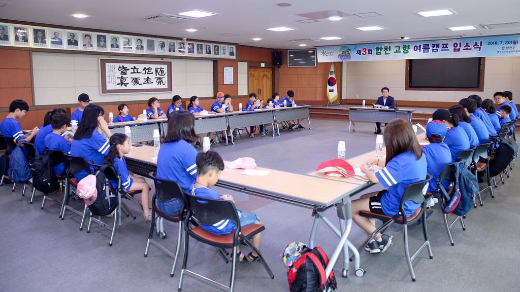 합천군(군수 문준희)은 지난 30일 군청 3층 대회의실에서 향우 2~3세를 대상으로 하는「2018 합천 고향 여름 캠프」입소식을 개최했다. 합천군과 합천군 고향발전위원회가 공동 주관하는 이번 캠프는 7월 30일부터 8월1일까지 2박3일의 일정으로 진행됐다.