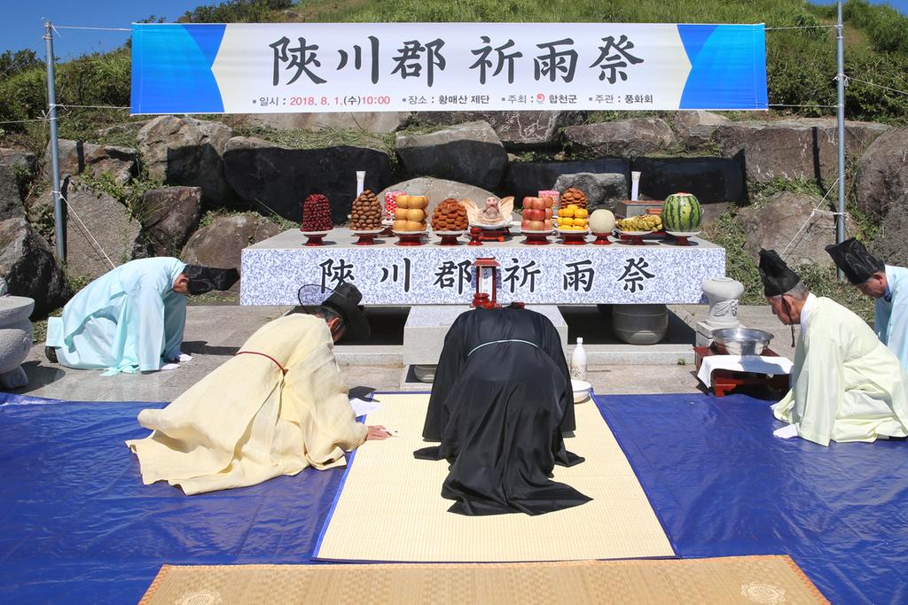 합천군(군수 문준희)은 평균 40℃에 육박하는 무더위가 장기간 계속되고 폭염으로 인한 농작물 가뭄 피해가 예상됨에 따라, 타들어가는 농심을 달래기 위해 1일 가회면 황매산 철쭉제단에서 기관·사회단체장 100여명과 함께 기우제(祈雨祭)를 올렸다.