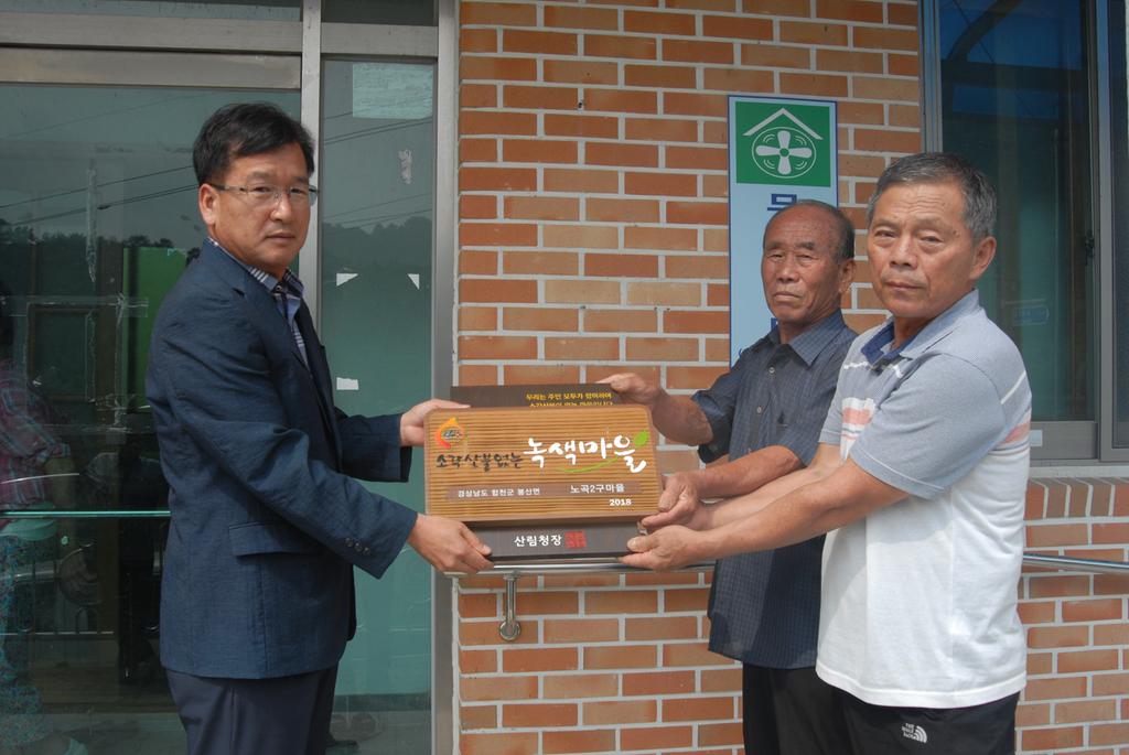 봉산면, 노곡 2구 마을 소각산불 없는 녹색마을 현판식 가져
